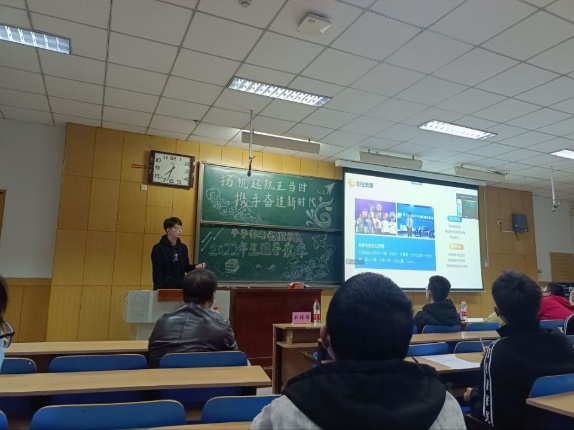最后由梁庭老师以“知新逐梦,不负少年”为主题进行了学院宣讲,他对本院两大专业的专业升学、就业情况、典型代表以及专业特色和实验平台进行了细致分析,告诉我们未来可期。在会议的最后,他对我们提出了几个个人意见,其中“天下人担天下任,少年事需少年事”这句话最是深入人心。