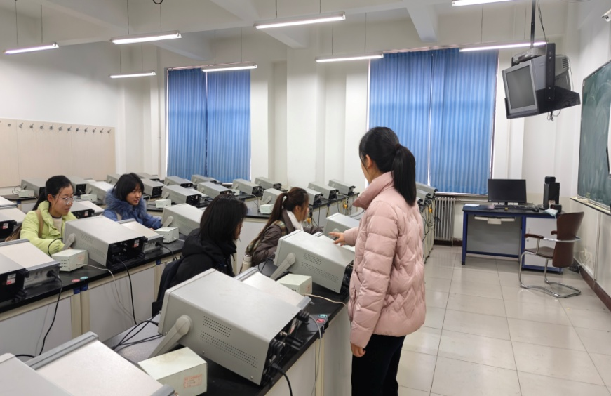 2024年12月12日,2419024107渠亚鑫、2419024108雷海蓉、2419024109马惠馨、2419024110吴玥四名同学在范金娜老师的带领下参观了大学物理实验室,详细了解了模拟示波器基础实验的实验仪器。