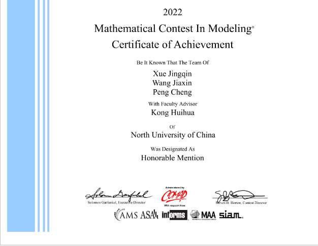 2022.5 获美国大学生数学建模竞赛 H 奖(美赛二等奖)
