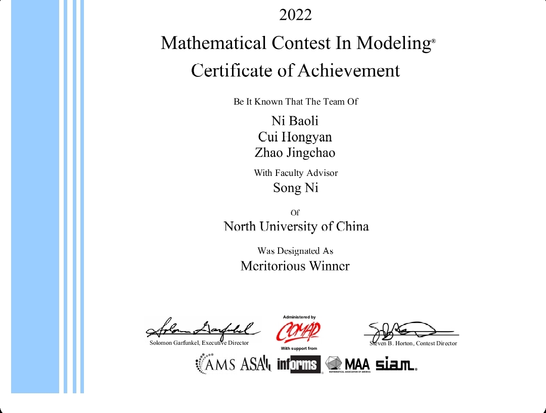 2022年12月 “高教社杯”全国大学生数学建模竞赛全国二等奖