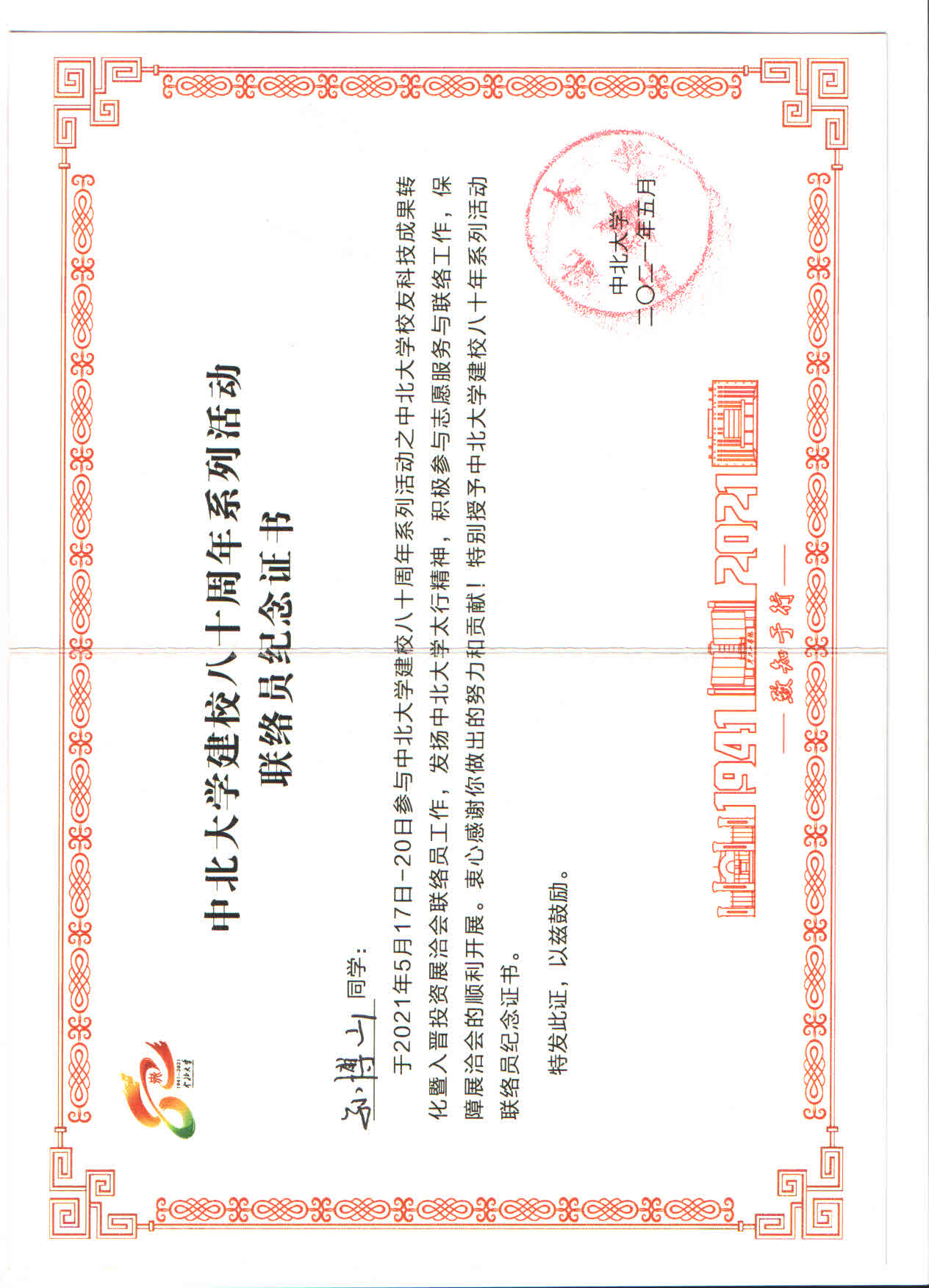 建校八十周年庆典”志愿者。