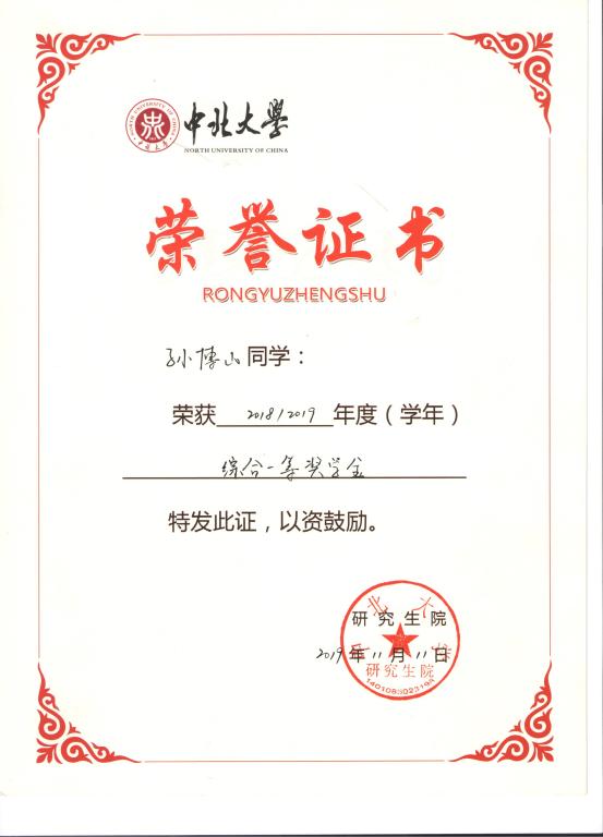 获得学业一等奖学金3次,三等奖学金1次;