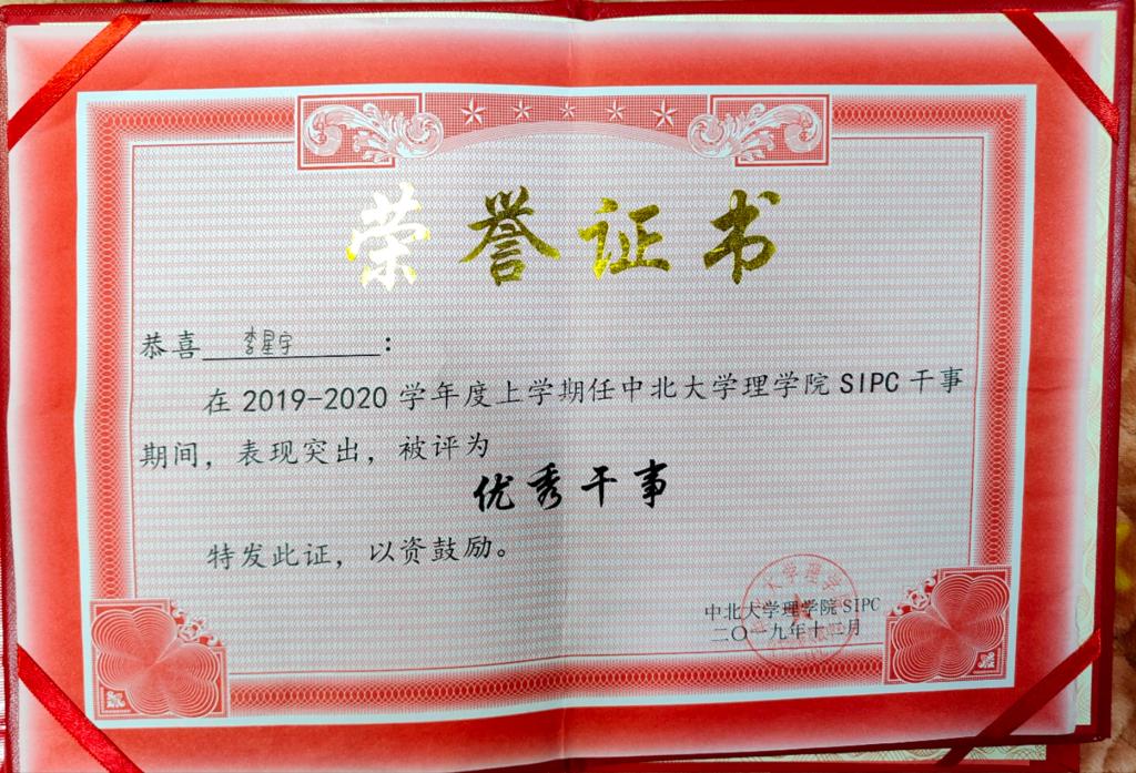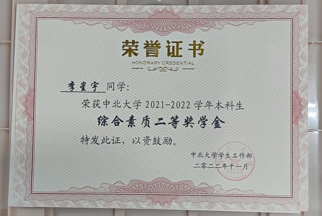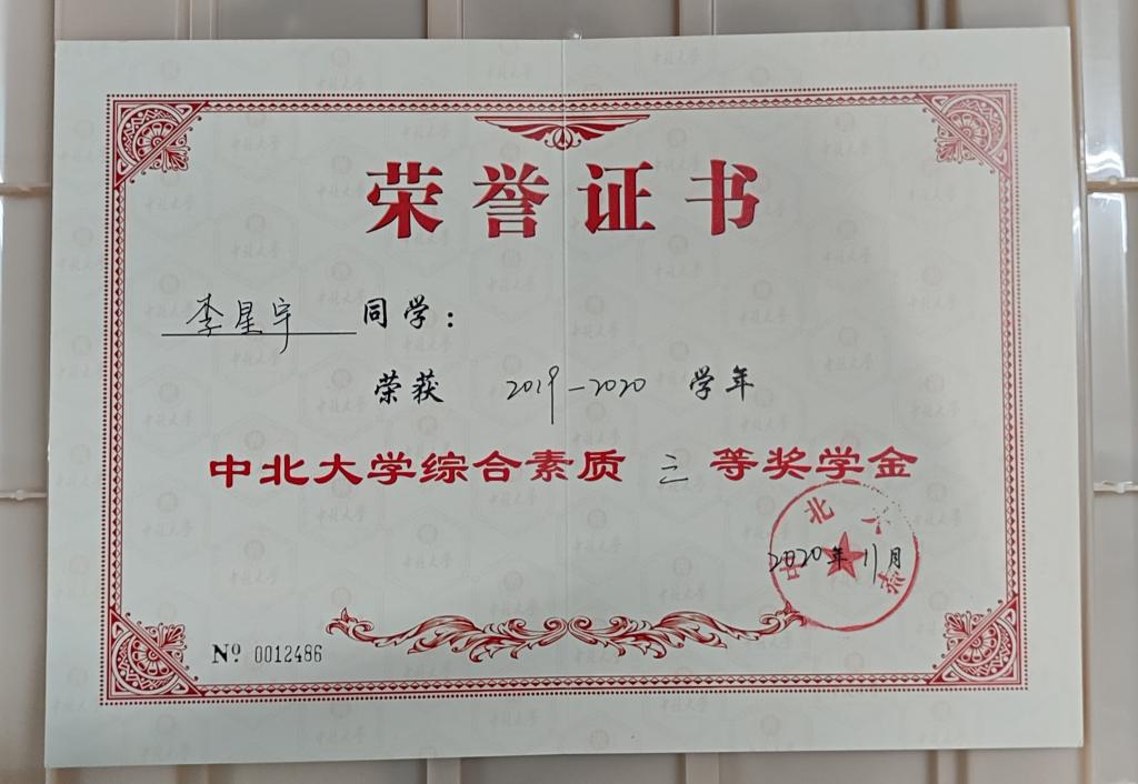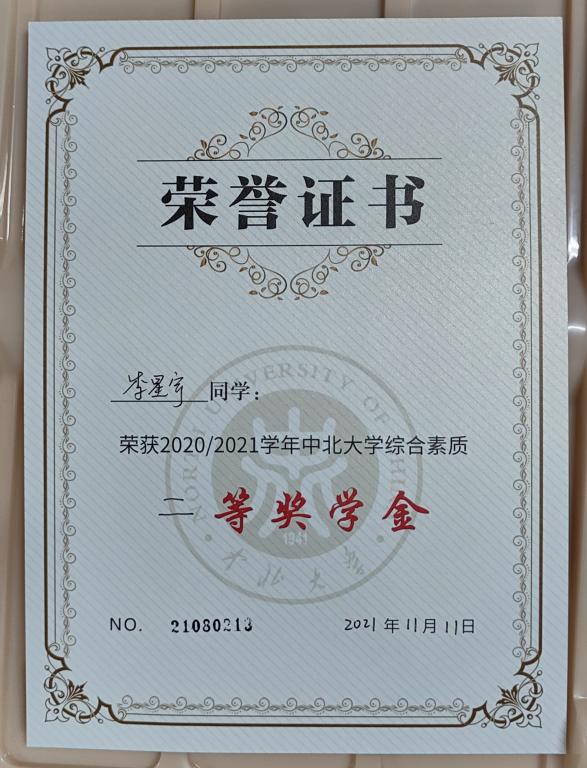 2019-2020学年获得获校级综合素质三等奖学金,2020-2022两学年获得校级综合素质二等奖学金,GPA 3.25,目前专业排名19/95,现已考至大连理工大学等离子体物理学专业。