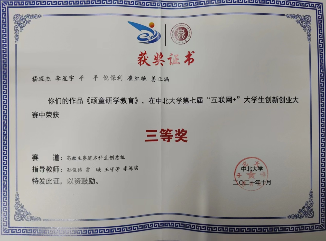 第七届“互联网+”大学生创新创业大赛中荣获三等奖