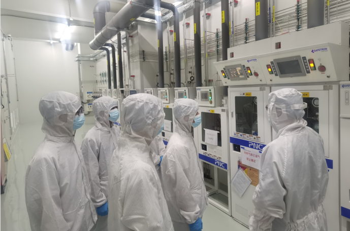 下午,公司条件保障部进行了安全、危化品特气培训,学生实地进行设备介绍并参观了洁净间。