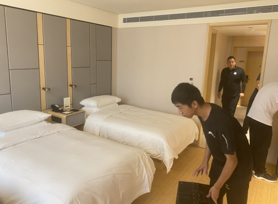 会前,太原国科半导体研究院有限公司人事部经理郝凯、综合部经理张军军、职工代表冯伟为学生办理入住并讲解园区基本环境。
