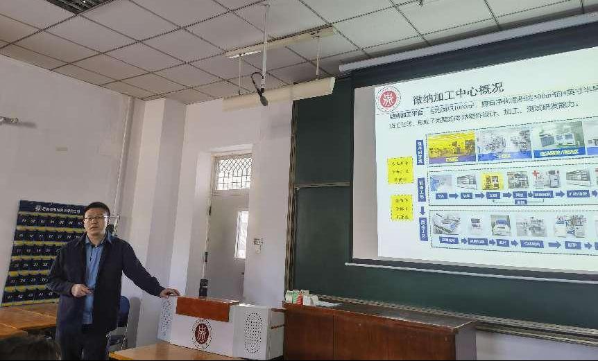 随后,微纳加工中心副主任雷程老师简要介绍了中心概况、可承接的工艺研发和科研服务、取得的代表性成果等,并就中心的进入流程、超净间的基础知识、行为规范、消防安全等进行了综合培训,会后又带领感兴趣的教师实地参观了微纳加工中心,为后续青年教师进入工艺间实验提供了必要的理论和实践基础。