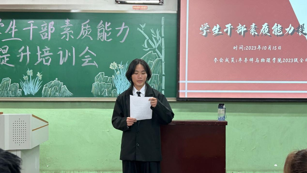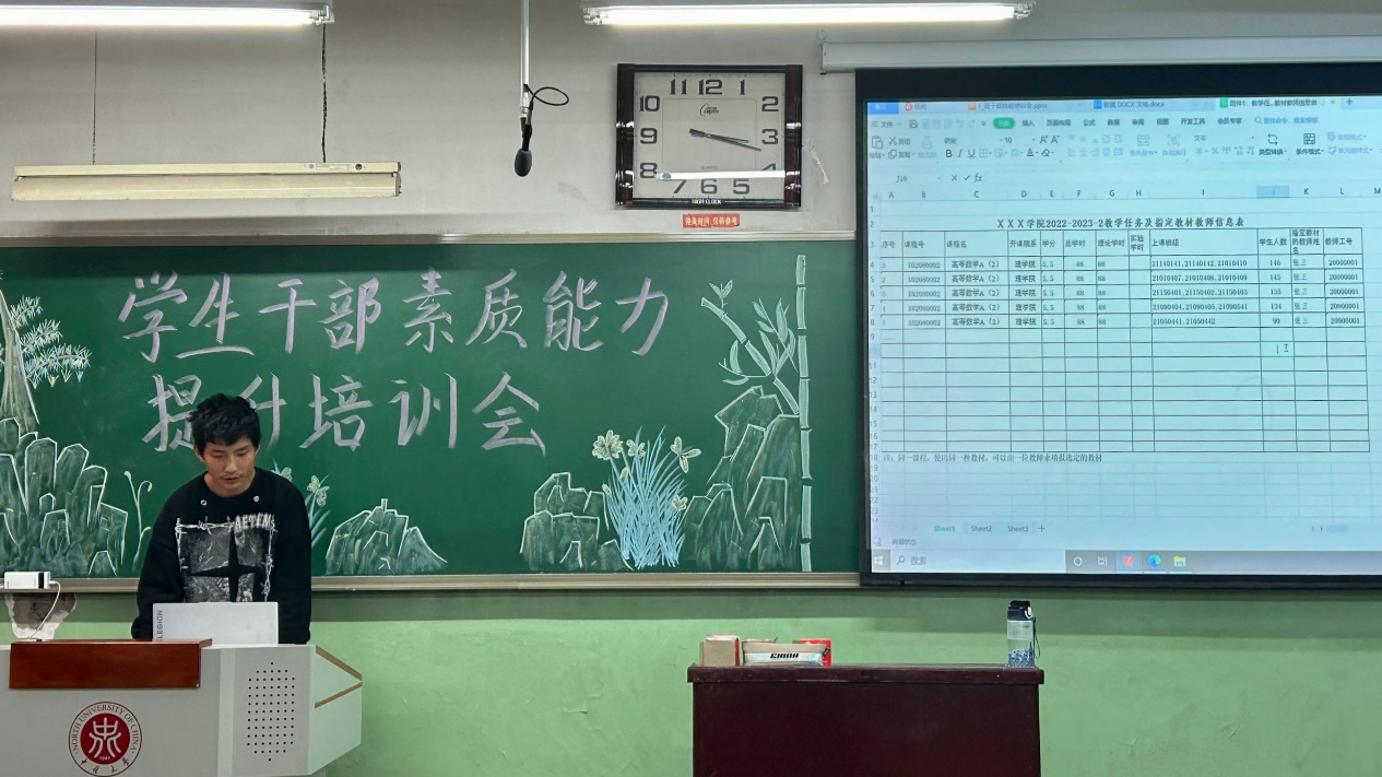 于10月15日下午在01102召开了学生干部素质能力培训会,学院一直注重人才综合素质培养,促进学生全面发展,坚持全过程全方位育人。学院借此机会帮助2023级班长和团支书和学生会干事快速上手现代办公软件,助力他们参与到班级和学院建设的中。本次培训会由办公室副部李安阳主持,新媒体副部阳佩霖和青志部副部闫锦波担任主讲人,学生会干部、干事和2023级各班班班长和团支书参加。