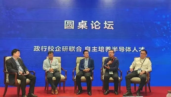 副院长梁庭、南京邮电大学集成电路科学与工程学院副院长蔡志匡围绕“行校企研联合,自主培养半导体人才”主题展开了热烈的讨论,从产业的实际需求、学校的培养方案、校企合作的模式方法、人才自身激励、企业选培留用的机制等多方面给出了各自的思考和建议。