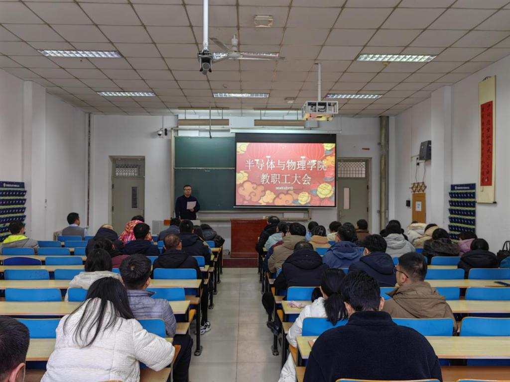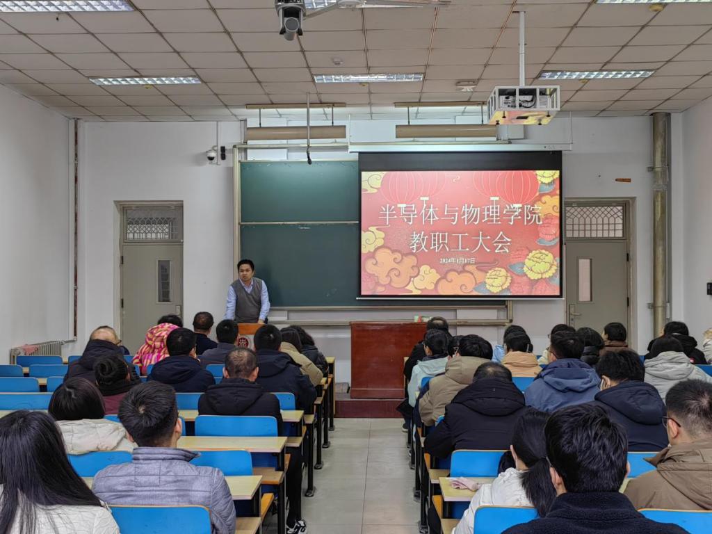 在11211H召开教职工大会,唐军副院长主持会议。本次大会对学院本学期工作进行了梳理总结,对寒假前的学生安全管理工作进行了安排部署。