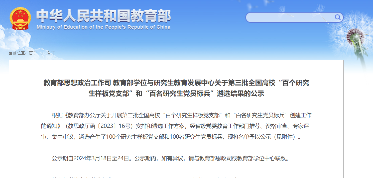 近日,教育部下发《教育部办公厅关于公布第三批全国高校“百个研究生样板党支部”和“百名研究生党员标兵”创建名单的通知》,经组织推荐、通讯评审、集中会审、结果公示,遴选产生100个研究生样板党支部和100名研究生党员标兵,我校做爱影片