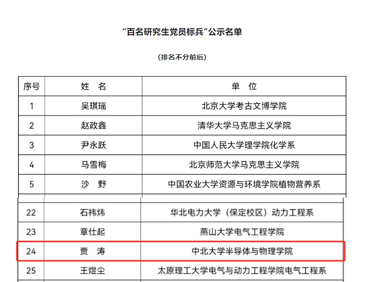 博士党支部成员贾涛获得全国高校“百名研究生党员标兵”荣誉称号,全省仅3名研究生入选。