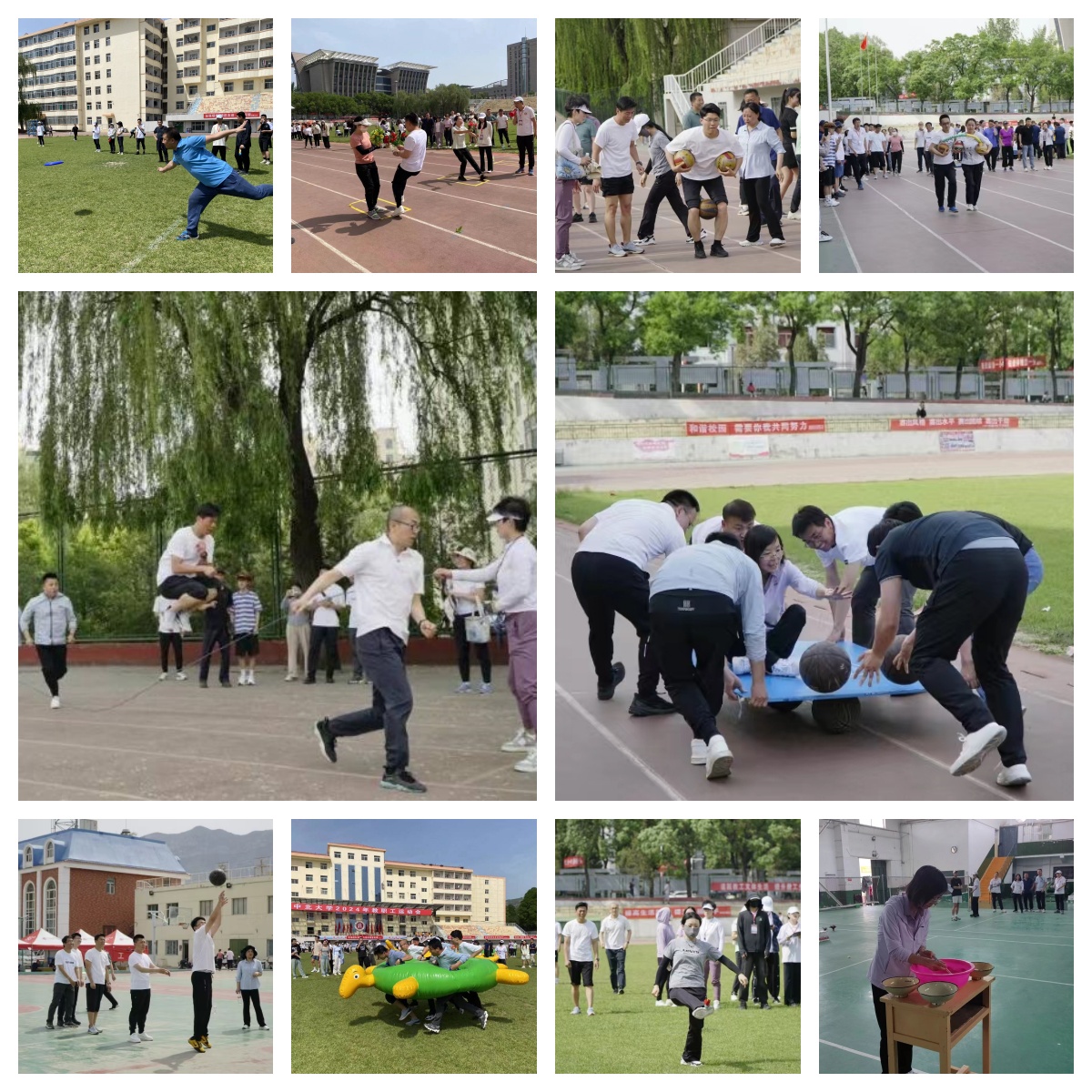 运动会各项趣味比赛正式开始。趣味比赛设“鹊桥相会”、 “袋鼠搬家”、 “财源滚滚”、 “龟兔赛跑”、 “同舟共济”、“ 穿衣接力赛”等项目。教师们纷纷投入到各个项目中,有的奋力冲刺,有的挥洒汗水,有的团结协作,共同完成了比赛。在赛场上,他们不仅展现出了高超的竞技水平,更展现出了学院教师坚韧不拔、勇攀高峰的精神风貌。这些项目不仅考验了教师的身体素质,更考验了他们的团队协作能力和智慧。