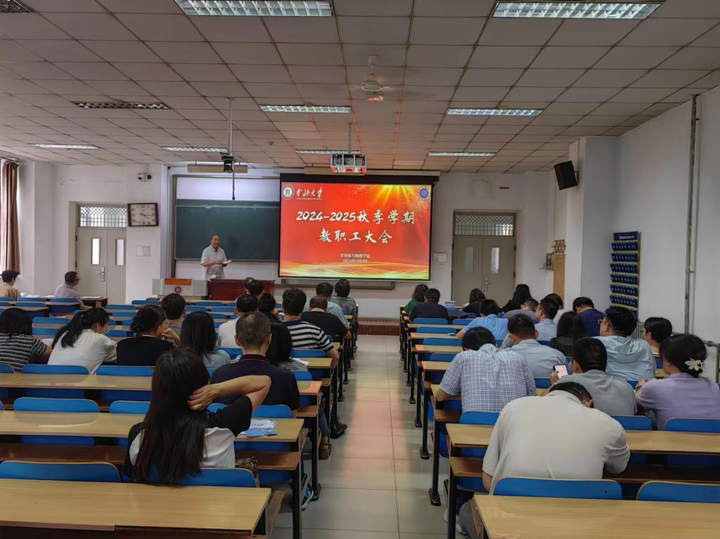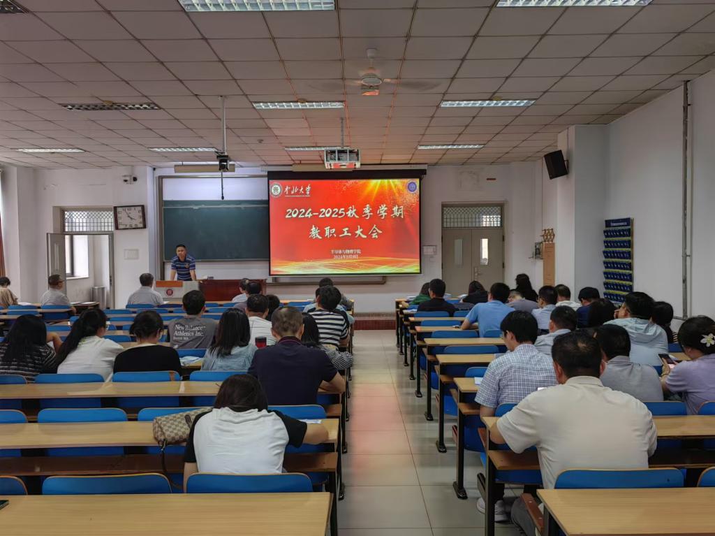 教职工大会于9月9日下午在11305教室召开,会议由学院副院长唐军主持,本次大会对学院上半年工作进行了梳理总结,并对学院本科教育教学审核评估的各项工作做了详细部署。