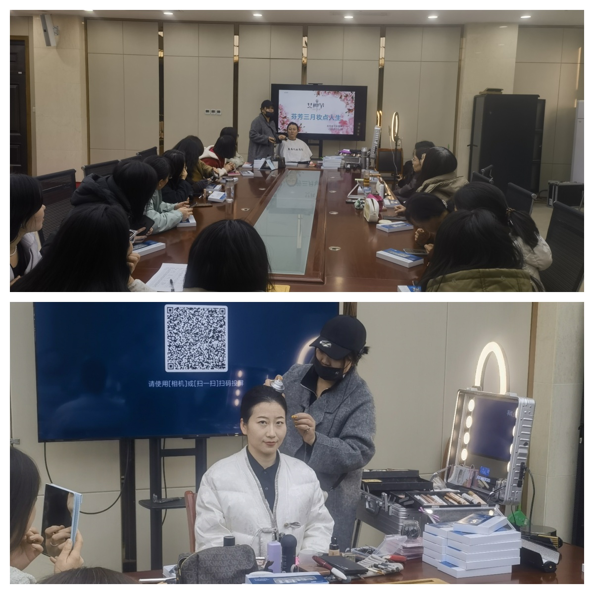 活动特别邀请到业内资深专业美妆师亲临现场,美妆课程内容丰富详实,从日常基础护肤的关键步骤,到妆容的精妙搭配,尤其是聚焦职场妆容的打造要点,手把手传授技巧,让大家领悟如何巧用化妆工具与产品,雕琢出最契合自身的精致妆容。现场气氛热烈非凡,不仅学到了能即刻应用的美妆知识,更在相互交流、共同学习的过程中,真切感受到来自学院大家庭的关怀与温暖,内心充盈着满满的幸福感。