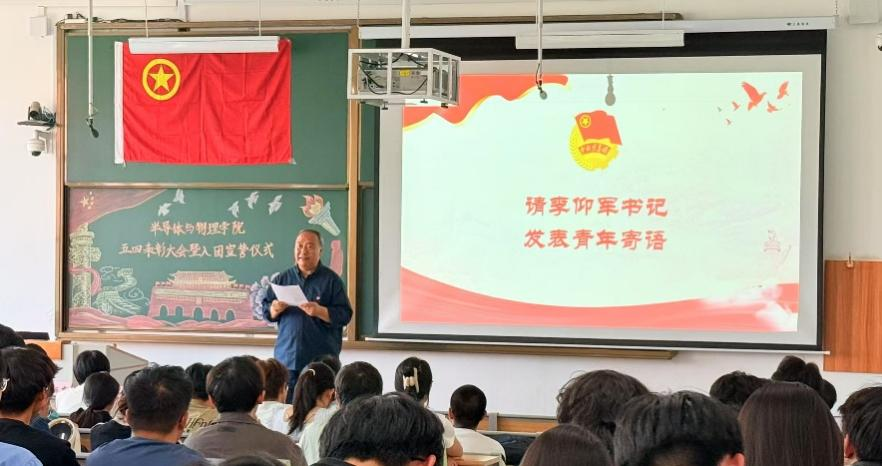 于17205教室隆重举办2024年度五四表彰及新团员宣誓仪式,学院党委书记李仰军、团委书记荆伟伟、副书记王旭及众多师生代表齐聚一堂。活动在雄壮的国歌声中正式启动。