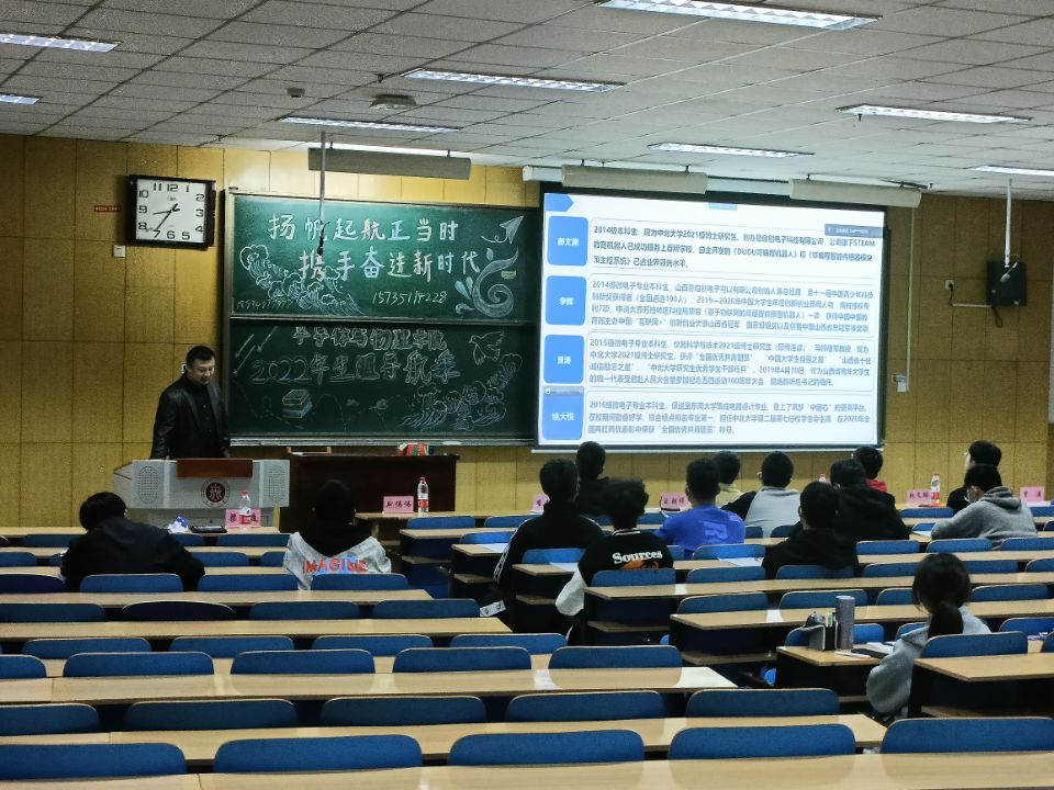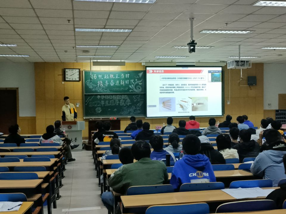 最后由梁庭老师以“知新逐梦,不负少年”为主题进行了学院宣讲,他对本院两大专业的专业升学、就业情况、典型代表以及专业特色和实验平台进行了细致分析,告诉我们未来可期。在会议的最后,他对我们提出了几个个人意见,其中“天下人担天下任,少年事需少年事”这句话最是深入人心。