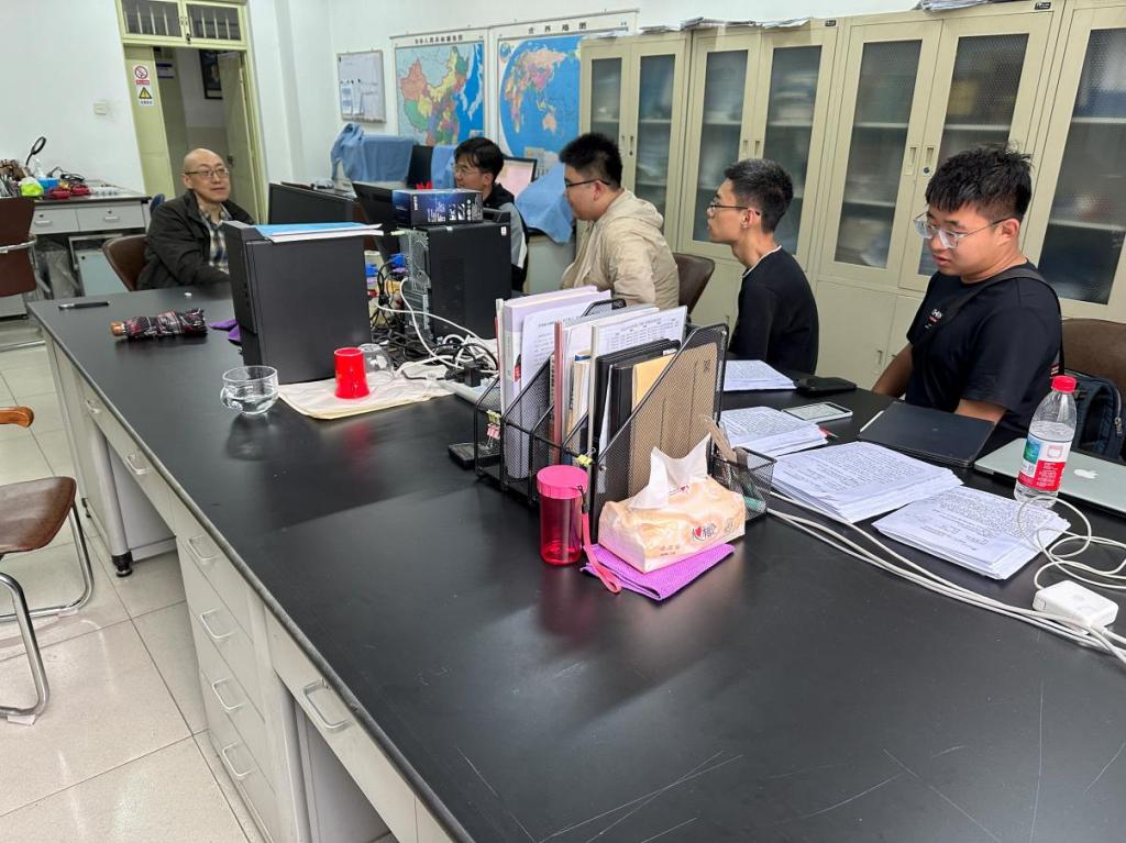 的学业导师杨常青与本学院的四位大 二 学生——赵沾旭、张兴龙、张之源、 米嘉伟进行了座